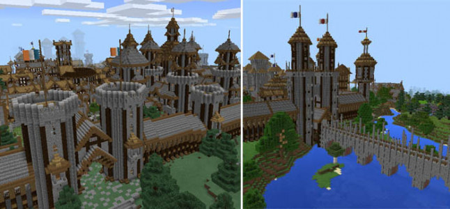 Skrimville - на этой карте создано целое королевство, скачайте эту карту для minecraft Pe, чтобы стать королем или владыкой этого замка. Карта просто огромная! Весить больше 100 мегабайт. В этом замке есть куча разных зданий, соборы, церкви, огороды жителей, мосты, и все это обнесено огромной стеной, которая будет охранять ваш город.