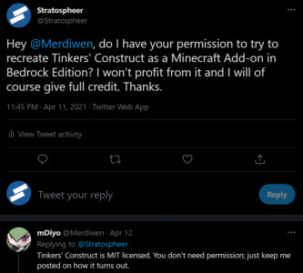 Первоначально Tinkers' Construct: Bedrock Edition разрабатывался для Java, в последующем он был переделан под популярную версию для смартфонов. Здесь включено много блоков, инструментов и различных материалов.