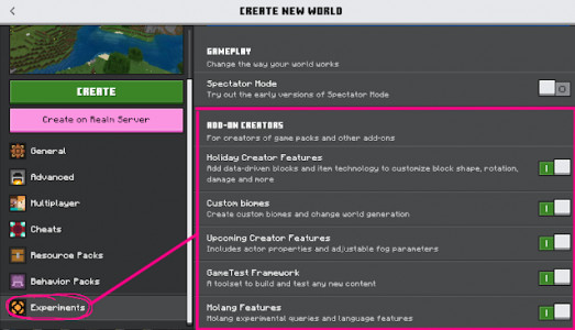 Для работы мода нужно включить Экспериментальные опции в настройках карты