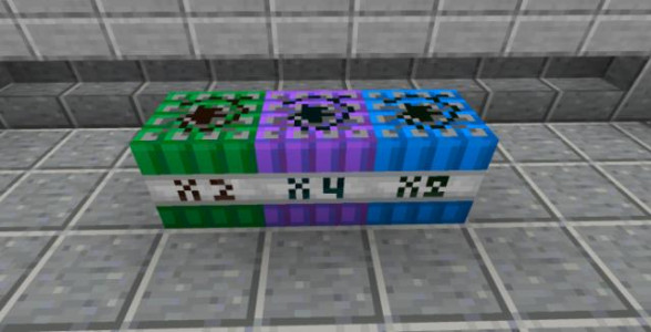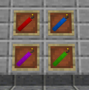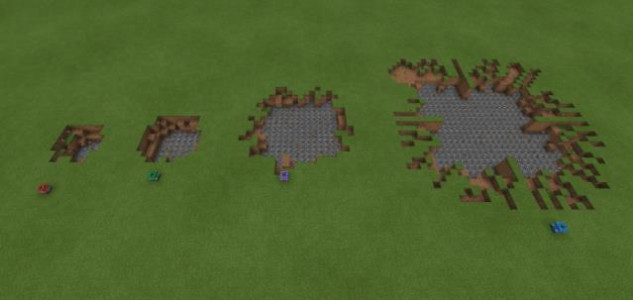 Блоки TNT отличаются по силе взрыва пропорционально своей мощности (в 2, 4 и 8 раз).