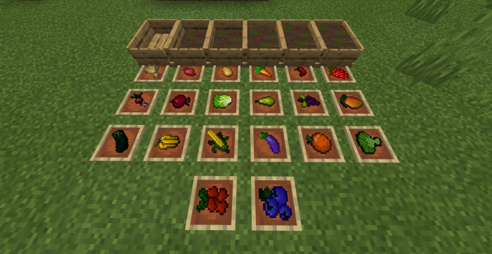 В общей сложности, аддон достаточно объемный, и включает в себя намного больше контента в сравнении с тем, что приведено выше. Ниже вы можете изучить основные рецепты крафта предметов, а также полный список растений и животных.