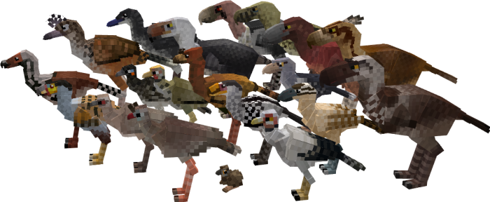 Мод: Aviancraft: Seriemas – это большое дополнение, которое приносит в Майнкрафт почти 2 десятка разновидностей доисторических птиц.