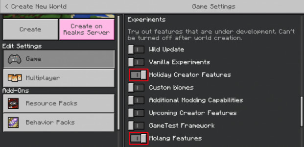 Для работы мода нужно включить Экспериментальные опции в настройках карты