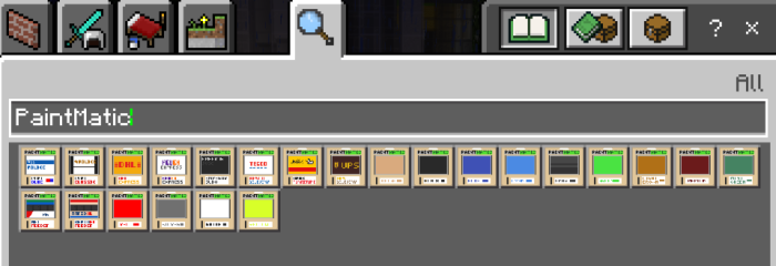 Многие модели автомобилей, можно перекрасить в соответствии с доступной цветовой палитрой. Чтобы воспользоваться палитрой введите слово PaintMatic в поисковом инвентаре.