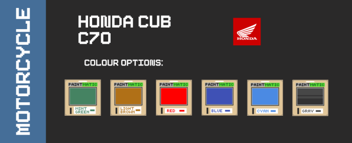 Модельный ряд включает: Honda Cub C70, 23 RetroHavoc: The Chopson, Kawasaki KZ1000.