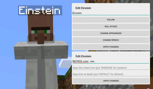 Ultimate NPCs - это мод для тех, кто хочет подружиться с мирными жителями в minecraft PE. При помощи мода Вы сможете использовать жителей для помощи и защиты, можно будет давать им имена и изменять скины.