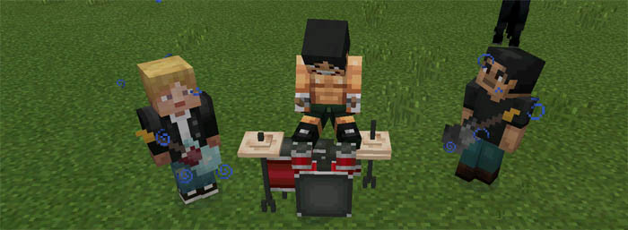 Rock Stars - мега крутой музыкальный мод для minecraft PE. Он добавит барабанную установку и гитары, которые позволят играть музыку, установите его вместе с друзьями и сможете создать свою собственную и настоящую рок группу! Ведь это очень круто и такой мод сможет воплотить мечту некоторых игроков! Смотрим на скриншотах как это выглядит, а еще ниже есть рецепты, которые помогут создать Вам все эти музыкальные инструменты в игре minecraft PE.