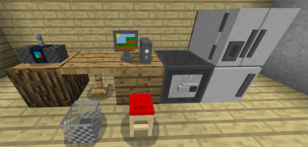 Я уверен, что каждый игрок желает сделать свой Minecraft PE реалистичнее и добавить что-то в игру для её улучшения, и то что поможет сделать песочницу похожей на реальный мир. А что может сделать minecraft PE более реалистичным, чем настоящая мебель для дома? Конечно же ничего. Mine-Furniture добавляет мебель в minecraft PE. Посмотрите на картинки внизу и узнайте, как выглядят новые предметы. Всего таких вот предметов мебели будет около 15 штук. Их можно добавить в свой дом, на кухню или к примеру, в гостиную. Так будет очень реалистично! Приятной игры.
