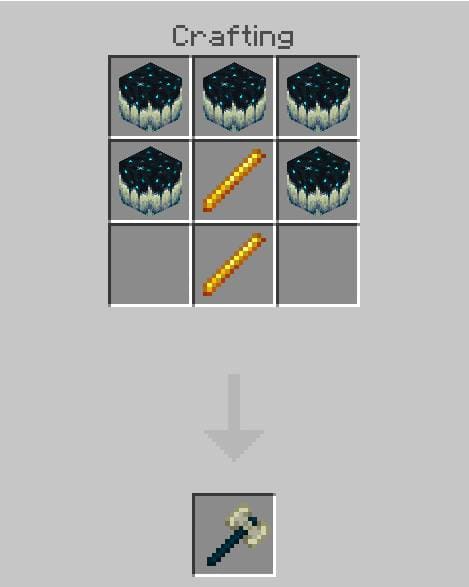 Скалковая кирка костей – обладает уроном в размере 65 ед. и запасом прочности в 8031 ед. Также могут быть наложены чара. Удобен для фарма особо прочных материалов.