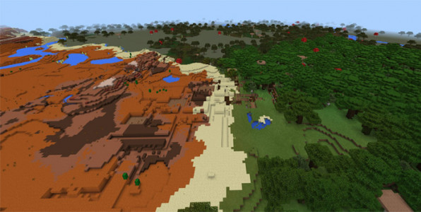 Создав мир при помощи номера сида Вы получаете на спавне ущелье с большой шахтой внутри. Но самое главное, это находится на стыке четырех биомов: болотного, песчаного, лесного и месса. Интересный мир, плюс отличный старт для начала выживания. Приятной игры.