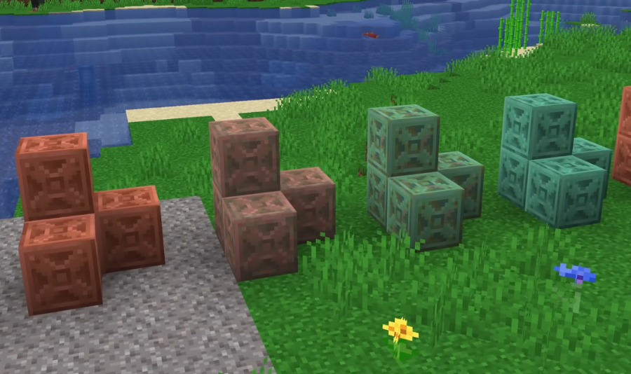 Данный материал уже присутствовал в игре, но в новом дополнении разработчики расширили спектр возможностей этого благородного метала. Из медных блоков можно создавать: