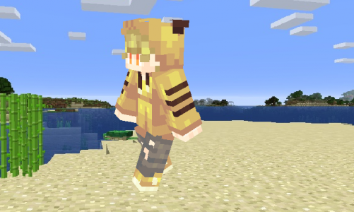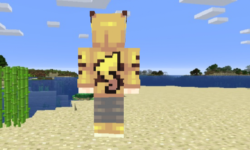 Скин для настоящих фанатов покемонов, которые играют в мобильную версию игры minecraft покет эдишн. Он сделан специально так чтобы установив этот скин вы выглядели на в игре как милый покемон - Пикачу. Это выходит из-за прикольной курточки. Скачать этот скин можно бесплатно и установить их будет легко. Фанатам покемонов посвящается.