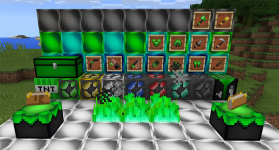 GreenDays - это прикольная текстура для тех игроков которые любят зёленый цвет, она изменяет вид некоторых блоков и предметов делая их этим тоном также алмазная броня теперь будет зеленой на вид.