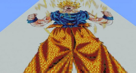 Если вам нравятся пиксель арты любимых героев в мире Майнкрафт, то вы по достоинству оцените огромную картину с изображением Гоку.