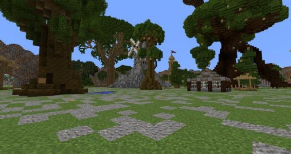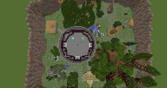Постройка: Огромная арена представляет собой огромный комплекс, огороженный каменными стенами. Внутри находится несколько башен, деревья, водоемы и основная арена для битв, которая висит в воздухе. Площадь поля позволяет вмещать в себе до 50 игроков, и по этой причине подойдет для организации масштабных ивентов.